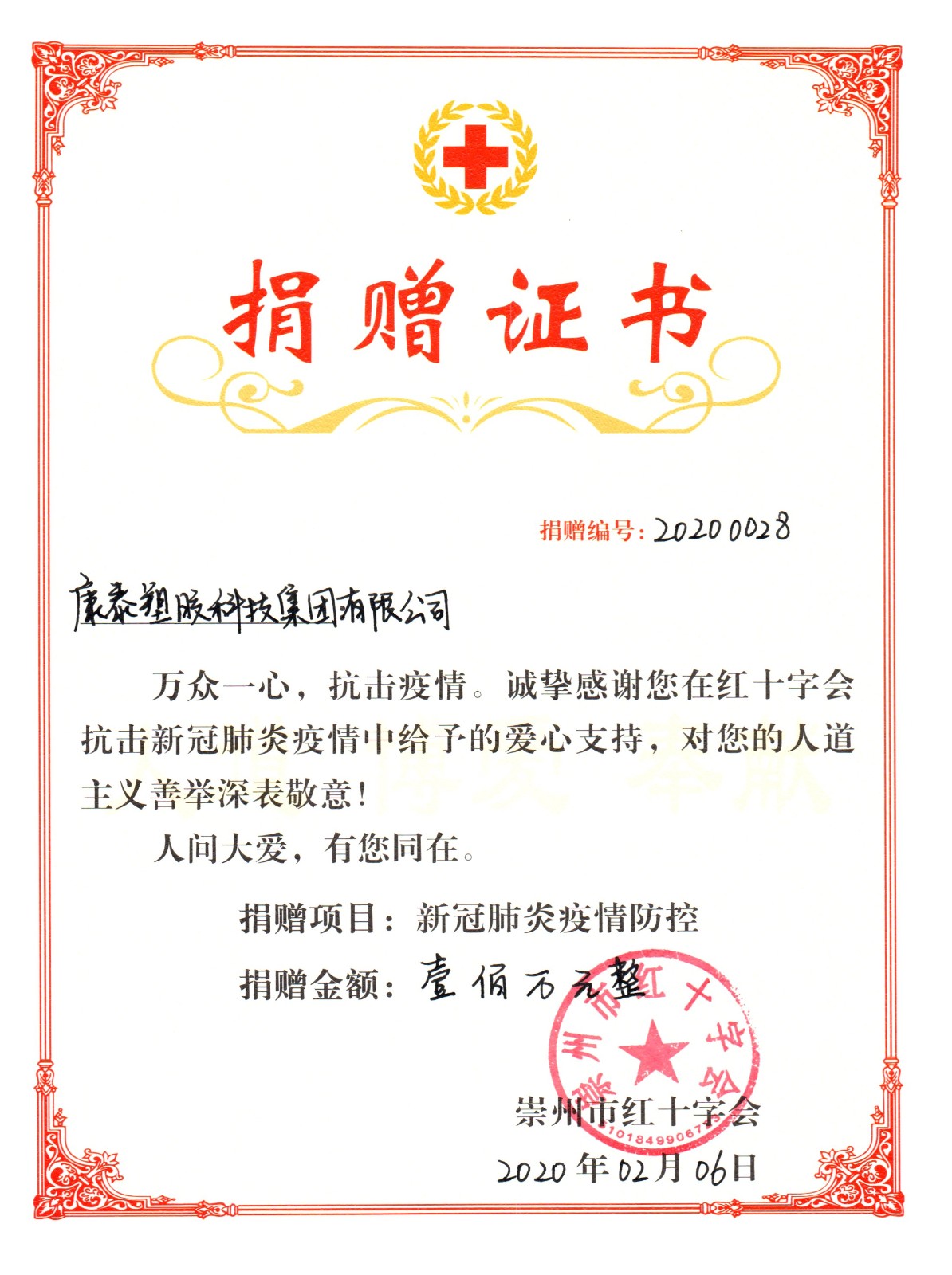 2021.07洪水無情 康泰有愛-康泰集團(tuán)鄭州子公司及員工、經(jīng)銷商捐款52萬余元支援河南抗洪救災(zāi)近期,受極端暴雨影響,河南多地出現(xiàn)嚴(yán)重的洪水災(zāi)情,牽動(dòng)全國人民的心。為支持河南省防汛救災(zāi)工作,7月25日,康泰塑膠科技集團(tuán)(鄭州)有限公司通過新鄭市紅十字會(huì),向河南災(zāi)區(qū)捐款50萬元,用于防汛救災(zāi)和災(zāi)后重建工作。圖為捐贈(zèng)證書同時(shí),在...閱讀人數(shù):8914 -