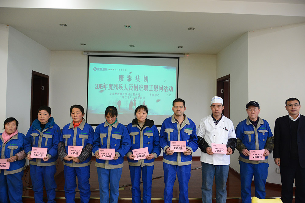 2020.01讓員工感受家的溫暖-康泰集團向殘疾及困難職工發(fā)放慰問金圖為慰問現(xiàn)場“1500元、2000元、3000元、5000元……總計42500元”。這是1月14日,康泰集團向17名殘疾及困難職工發(fā)放慰問金活動現(xiàn)場。隨著一年一度新年的到來,康泰集團再次拿出專項資金,表達公司對殘疾職工和家庭困難職...閱讀人數(shù):6934