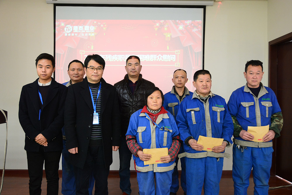 2019.02迎新年 送溫暖-康泰集團(tuán)向殘疾職工、家庭困難職工發(fā)放慰問(wèn)金春節(jié)將至,溫暖送來(lái)。為傳承扶貧濟(jì)困的傳統(tǒng)美德,表達(dá)公司對(duì)殘疾職工和家庭困難職工的關(guān)懷和照顧,讓他們感受到康泰大家庭的溫暖,1月27日上午,康泰集團(tuán)開(kāi)展了“殘疾職工、家庭困難職工慰問(wèn)活動(dòng)”??堤┘瘓F(tuán)工會(huì)主席吳彬向15位殘疾職工、家庭...閱讀人數(shù):6804 -