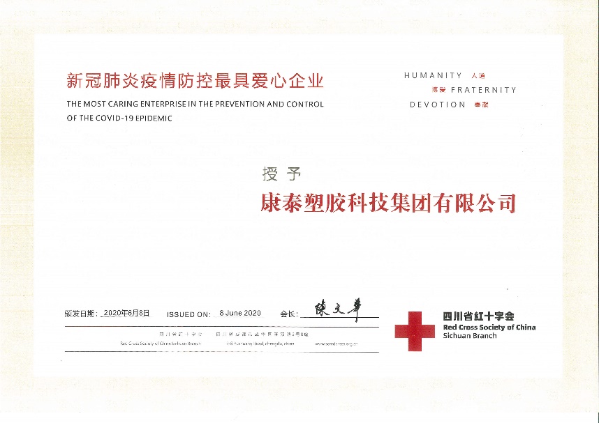 2020.11康泰集團(tuán)榮獲四川省“新冠肺炎疫情防控最具愛(ài)心企業(yè)”稱號(hào)近日,為表彰康泰塑膠科技集團(tuán)在新冠疫情防控工作中的突出貢獻(xiàn),四川省紅十字會(huì)授予集團(tuán)“新冠肺炎疫情防控最具愛(ài)心企業(yè)”榮譽(yù)稱號(hào)。2020年1月,正當(dāng)全國(guó)人民喜迎新春佳節(jié)時(shí),一場(chǎng)突如其來(lái)的新型冠狀病毒肺炎疫情肆虐中華大地。面對(duì)新型冠狀病...閱讀人數(shù):6814 -