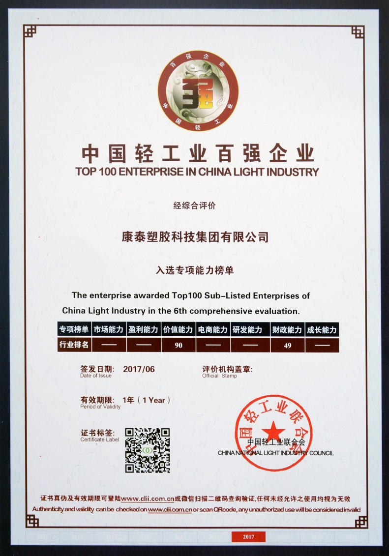 6月20日上午,由中國輕工業(yè)聯(lián)合會主辦、中國輕工業(yè)信息中心承辦的第六屆中國輕工業(yè)百強企業(yè)頒獎盛典暨“智慧輕工”高峰論壇在中國職工之家隆重召開。大會向社會各界隆重發(fā)布了“2016年度中國輕工業(yè)百強企業(yè)”榮譽榜單??堤┘瘓F有限公司憑借良好的價值能力和財政能力再度入圍 “2016年度中國輕工業(yè)百強企業(yè)”及“中國塑料管材行業(yè)十強企業(yè)”榜單??堤┘瘓F北京分公司經(jīng)理蔣華成代表公司參加會議并接牌。