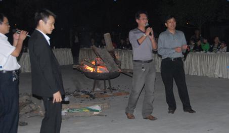晚宴后,大家紛紛來到戶外,圍著篝火舉杯歡唱,在主持人幽默詼諧的帶領(lǐng)下,參與互動的員工熱情高昂。活動一直持續(xù)到晚上10點,大家仍然意猶未盡。